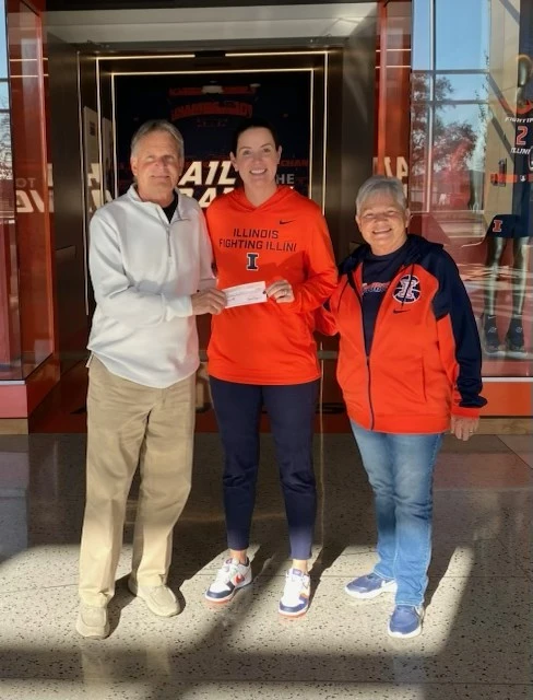 David Williams Foundation board member Cam Wallace present Head Coach Shauna Green and Courtsider President Susan Bonner a $6,000 check from the proceeds of their golf outing fundraiser.